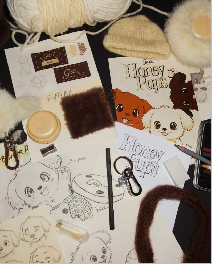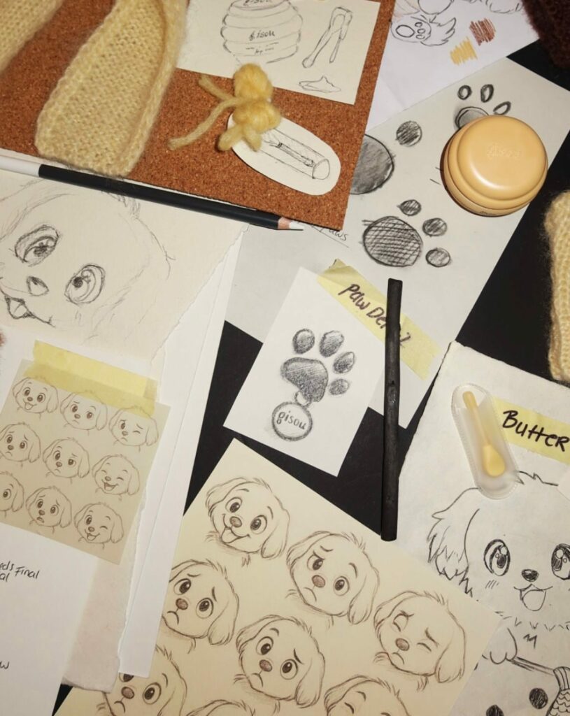 Avant même de révéler le doudou Honey Gloss, Gisou invite sa communauté dans les coulisses : dessins, essais de formes, choix des matières. En partageant ces fragments de création, la marque crée un lien émotionnel et installe un vrai désir autour du produit à venir.