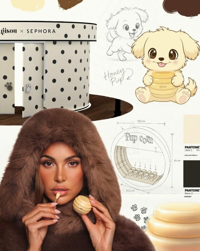 Pour son pop‑up avec Sephora, Gisou a misé sur un concept irrésistible : un doudou‑bag charm tenant le Honey Gloss en forme de ruche. Devenu icône de campagne, accessoire lifestyle et élément central de l’expérience, il porte toute la communication.