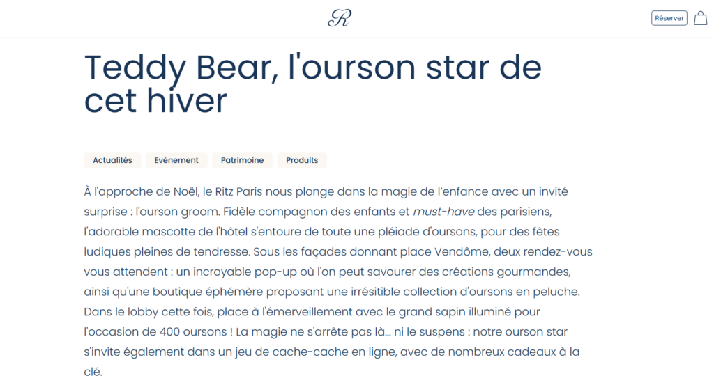TikTok devient ainsi un relais simple et efficace pour renforcer l’image du Ritz, le temps d’une photo. Leurs vidéos spontanées, liées au voyage et à Noël, touchent une audience jeune et internationale. TikTok devient ainsi un relais simple et efficace pour renforcer l’image du Ritz, le temps d’une photo. Le pop‑up a aussi été mis en avant sur le site du Ritz et dans le Journal des Palaces, renforçant encore sa présence et son attractivité.