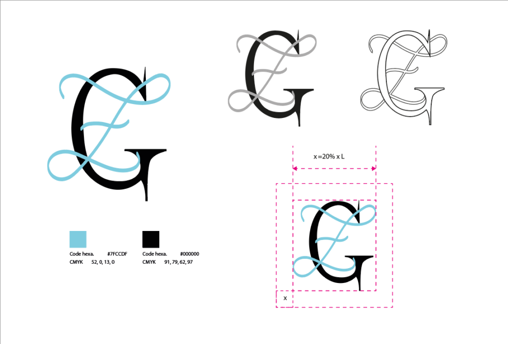 - Monogramme: J’ai réalisé un monogramme en utilisant mes initiales (Z.G). L’objectif était de créer une identité visuelle personnelle, originale et élégante, qui puisse représenter mon univers créatif.