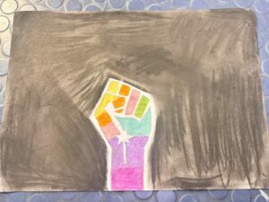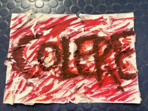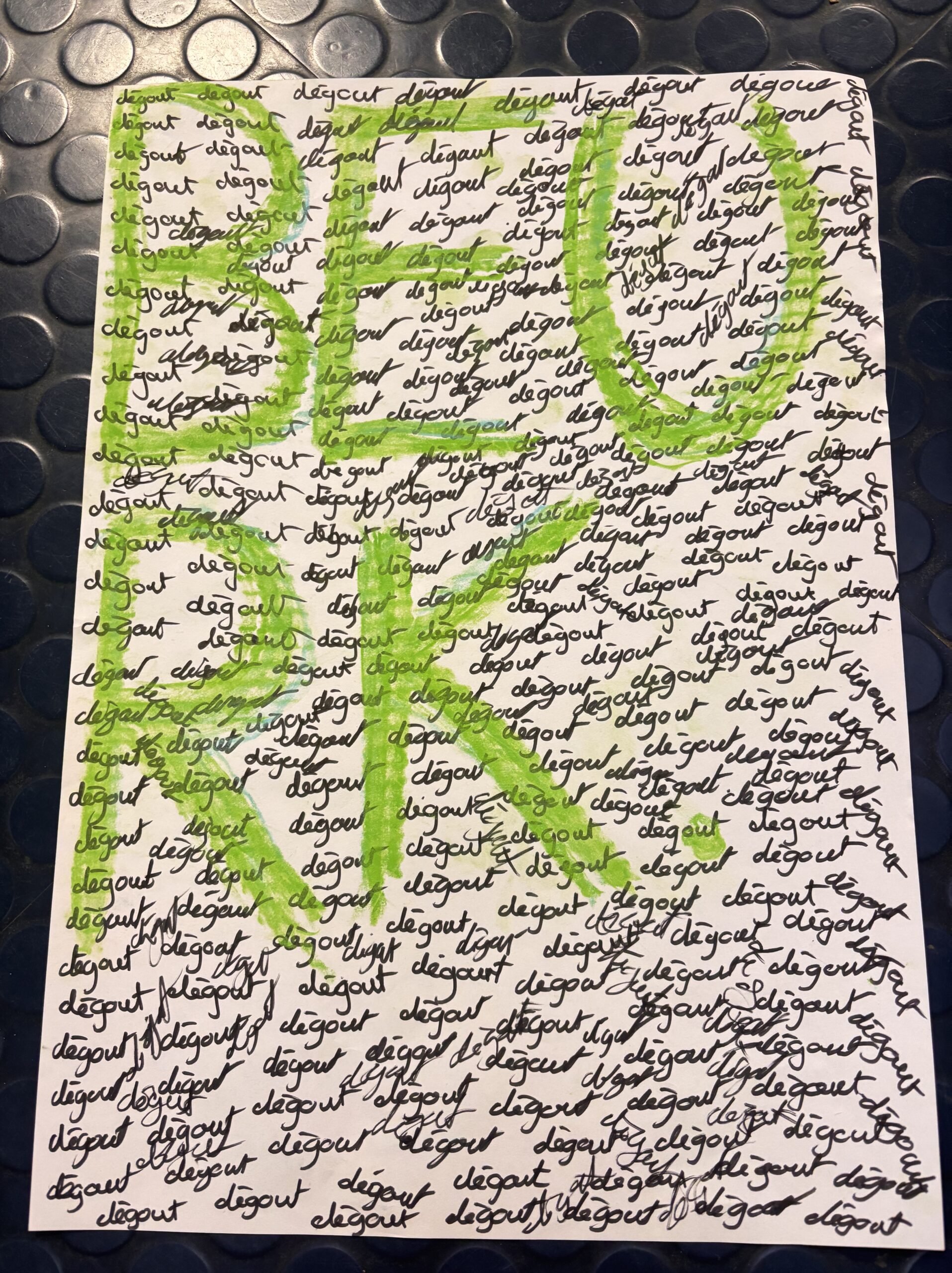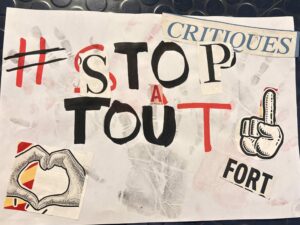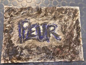 Nous avons réalisé un WORKSHOP « JE CRIS DONC J’ECRIS ». Individuellement nous avons crées des pancartes basée sur les 5 émotions principaux : la joie, la colère, la tristesse, la peur et le dégout.